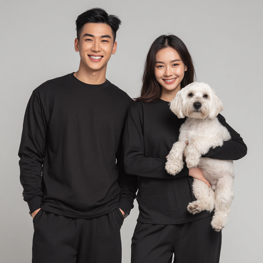 NUGGAL Unisex Pet Hair Resistant Tech T-shirt Long Sleeve Classic Black